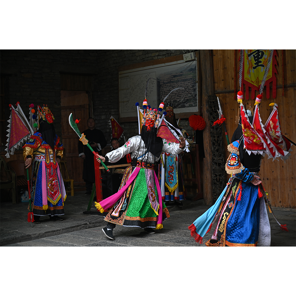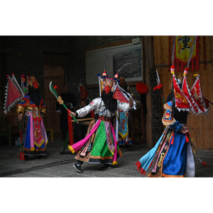 The Nuoxi of China may be traced back to the Ming Dynasty (1368-1644 CE), possibly much earlier (some believe the Shang and Zhou Dynasties) and was popular in large parts of the empire, but especially along the southern borders, where it was a form of entertainment for the imperial troops. It evolved from a sacrificial rite performed by shamans into a more dramatic form, with both Buddhist and Taoist overtones. Nuo opera is based on historical stories and stories based on the Taoist religion and all roles (including female roles) are performed by men. It evolved into a popular form of entertainment and was eventually accompanied by an orchestra of Chinese instruments. The Nuo opera never quite lost its shamanic connection, however, and also was used to exorcise evil spirits at the home of sick persons. The sacred connection is evident from a religious ceremony that always precedes the opening of a Nuo opera. In addition, a wooden statue representing the originator of the opera is present at every performance, and nobody except the opera troupe may touch props used in the performance. Although the Chinese Communist Party attempted to suppress Nuo performances and eliminated it from most of the country, the opera continues to be performed in three southern provinces of China today (Guangxi, Guizhou, and Jiangxi).