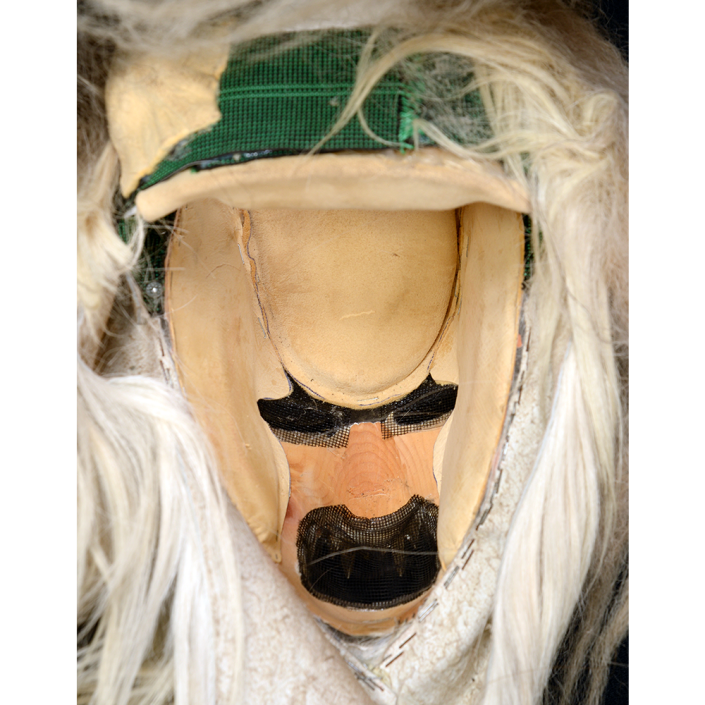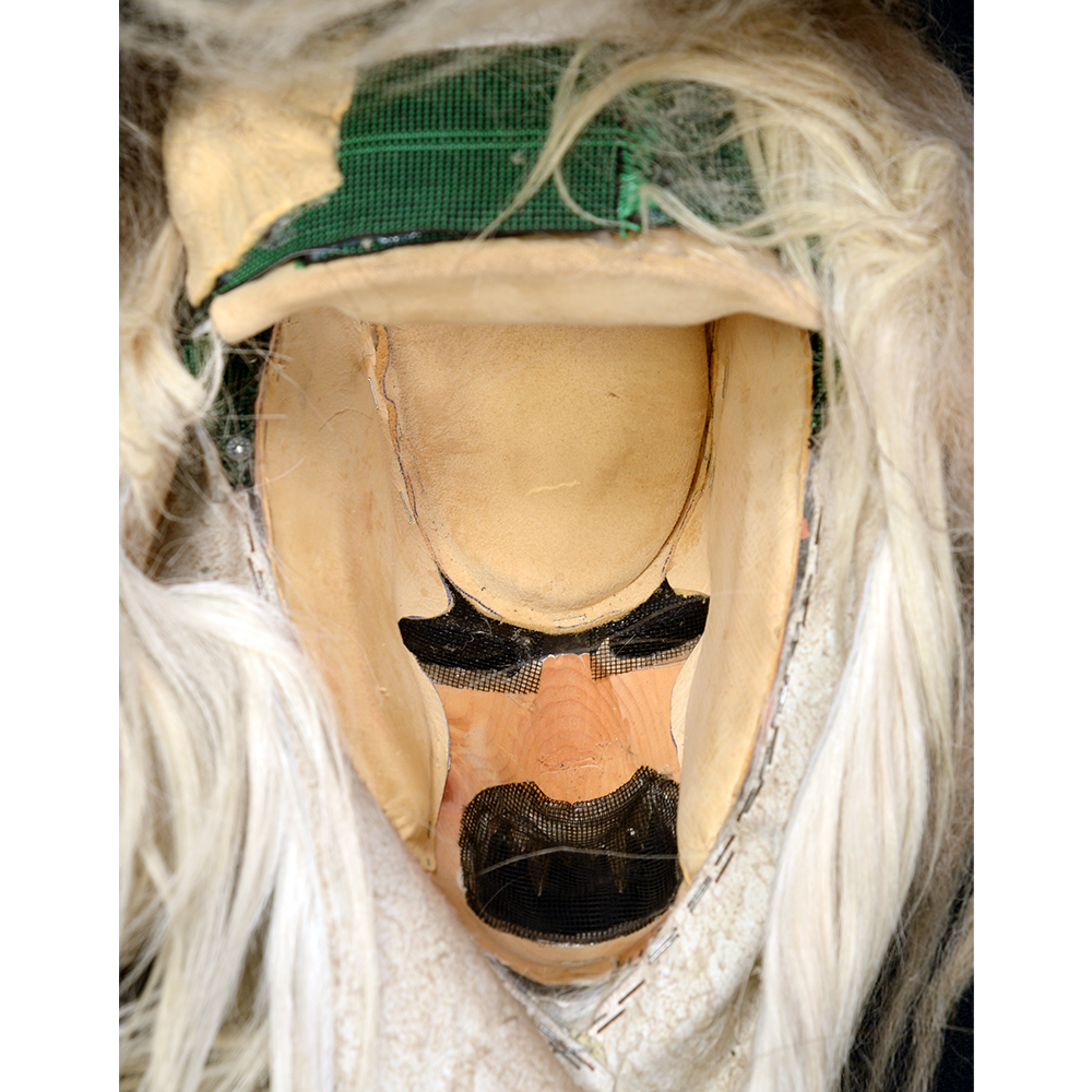 Increasingly the Krampuses parade with female masqueraders, sometimes one to a group and occasionally in groups composed mostly or entirely of female Krampuses. This mask represents a particularly ferocious female Krampus and was worn in Krampuslaufen from 2021 until 2024.