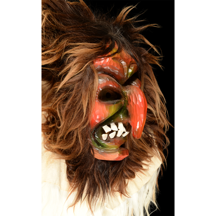 This specific mask was worn by Lucas Werlen, the son of the maker, from 2020 to 2025.