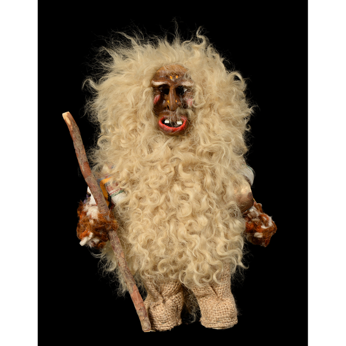 OTHER MATERIALS: sheep leather and wool; goat leather and hair; paint; stitching; cotton cloth and batting; metal staples