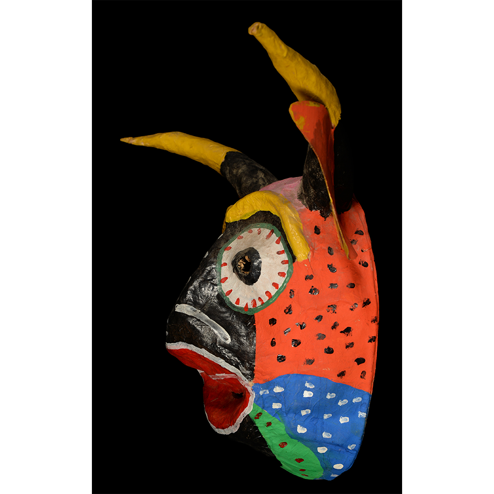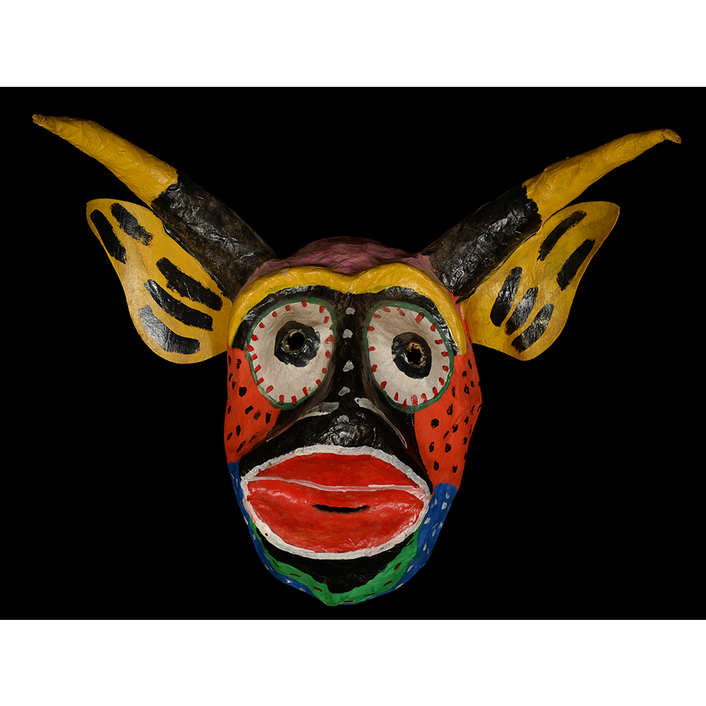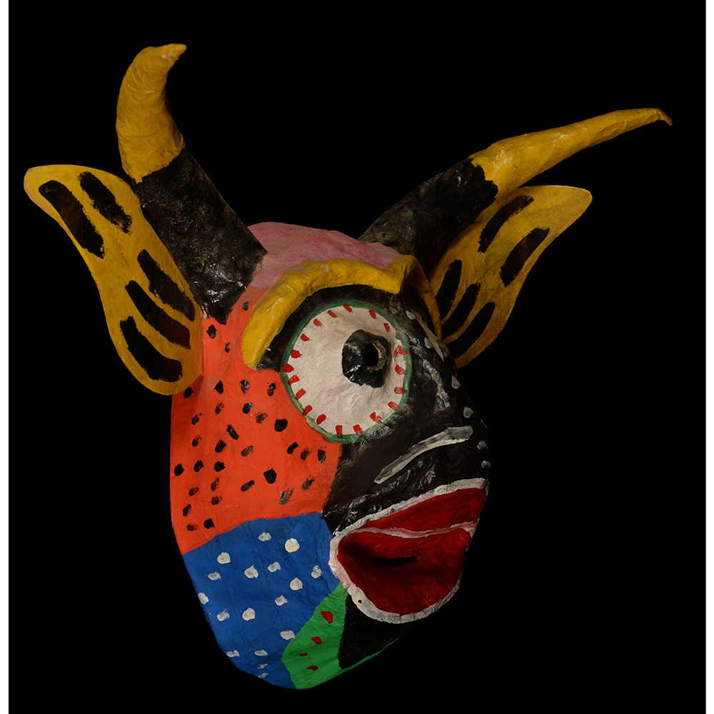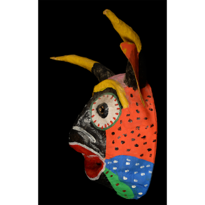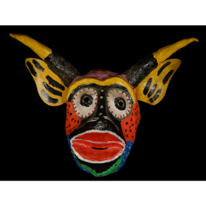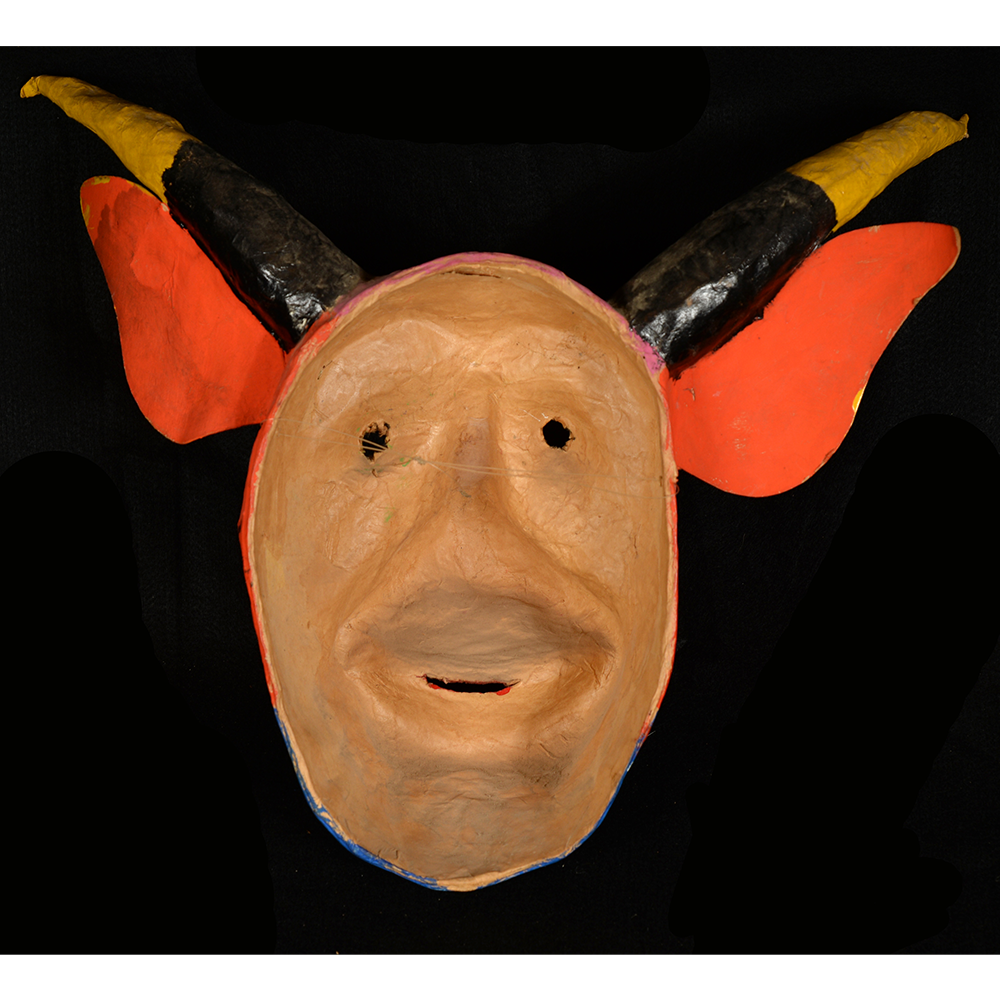 The dancing devils of Yare are a fraternal order that dances on Corpus Christi and other holidays. When the tradition of dancing in devil costumes first began in San Francisco de Yare, the masks were monochromatic, made from cloth, and came in many forms. These may date back to the 18th century. Over time, the drab cloth masks were replaced with cheaper paper maché, and they began to be painted more colorfully to resemble animals, such as bulls, pigs, dogs, or demons. Before dancing, each devil makes a promise to the Church, but devils never enter the church building itself. Instead, they hear mass outside the church and receive the Bishop’s blessing without entering.